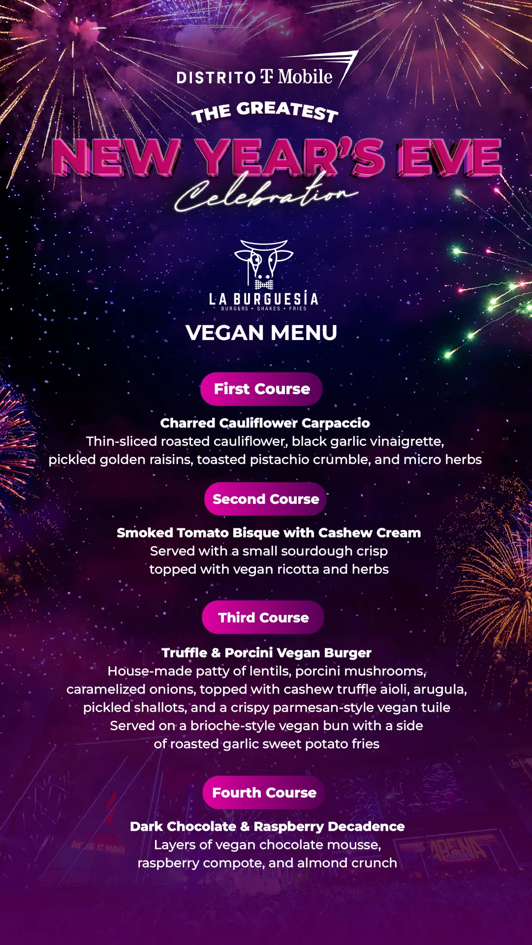 Savor the sublime with an exquisite fusion of cuisines, from a specially crafted burger and delectable aperitifs to the best prime cuts for an unforgettable celebration. The extraordinary New Year's Eve experience you want and deserve.